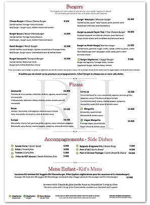 Our gourmet burgers are hand pressed and the pizza menu is globally inspired. Add to that the occasional classic French dish (Rich and creamy home-made Tartiflette anyone?) and we're confident you'll be able to find something for your taste buds to enjoy.